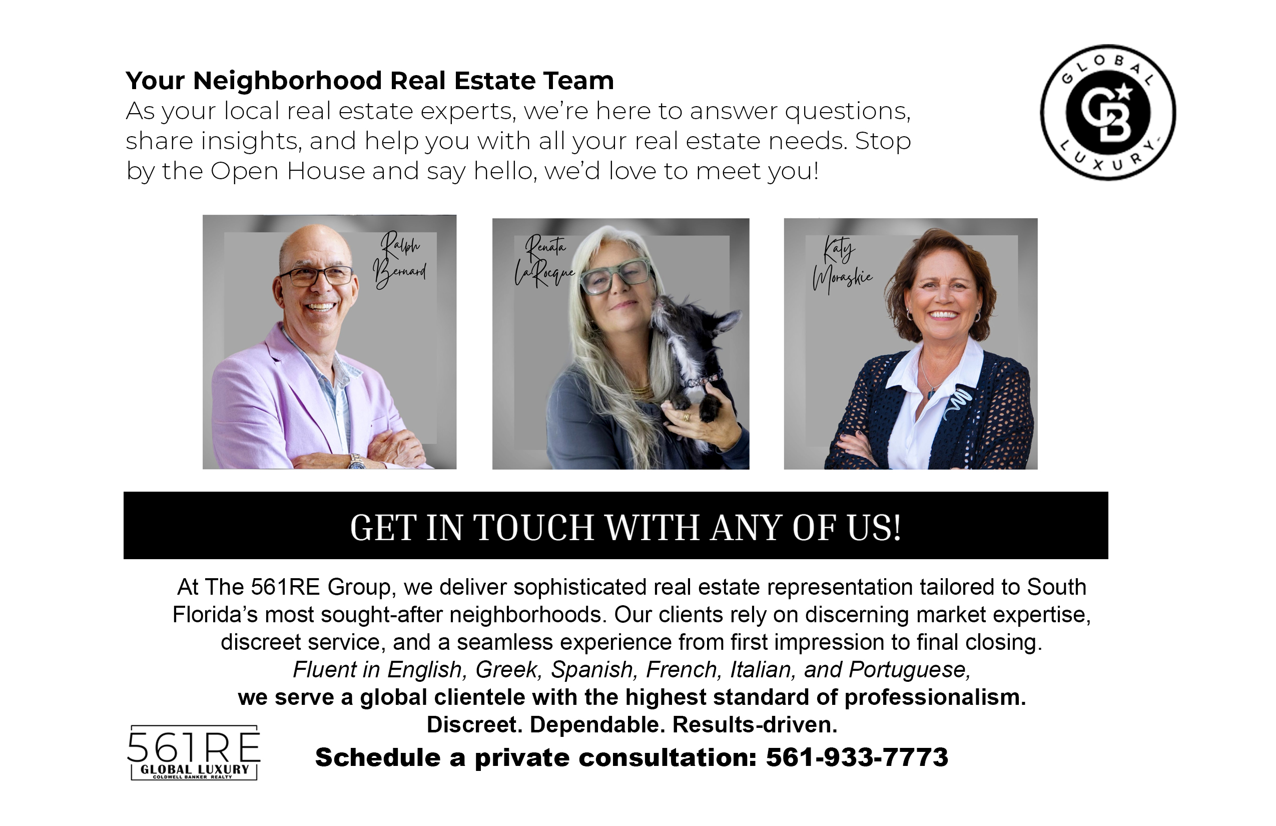 If you have any questions, would like to discuss your real estate goals, or simply want to explore the market, I am here to help. Feel free to reach out to me at (561) 599-3877, and let's schedule a time to connect at your convenience.